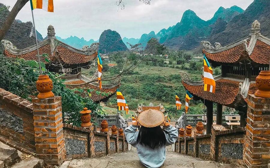 Next, visit the Phat Tich Truc Lam Ban Gioc Pagoda, the first Buddhist pagoda ever built in Cao Bang Province. Located in Dam Thuy Commune, just 500 meters from the waterfall, the pagoda sits on a 3-hectare site against the backdrop of Phia Nham Mountain. From here, you’ll enjoy a panoramic view of Ban Gioc Waterfall, surrounded by rice paddies and dramatic mountain ranges.